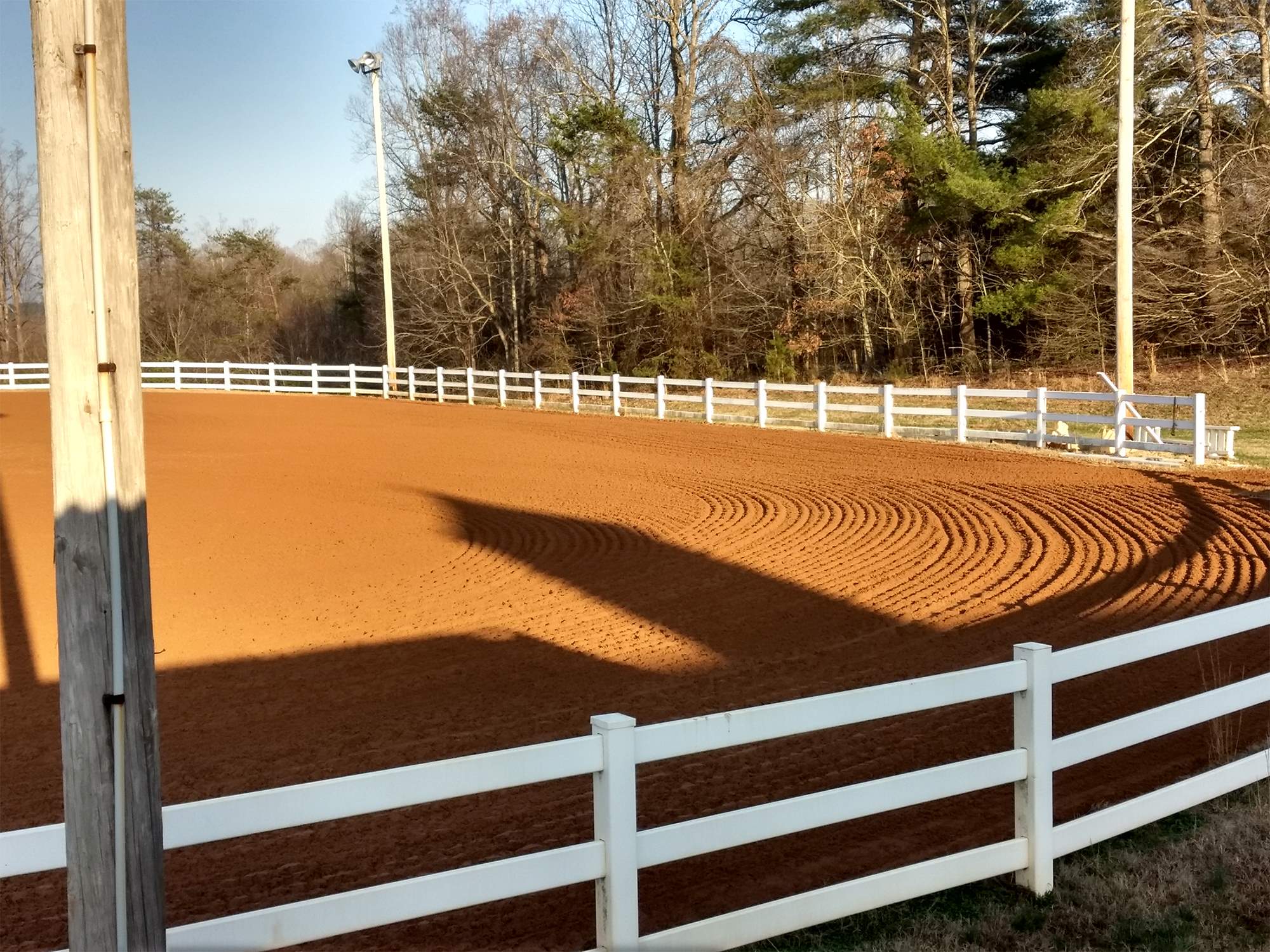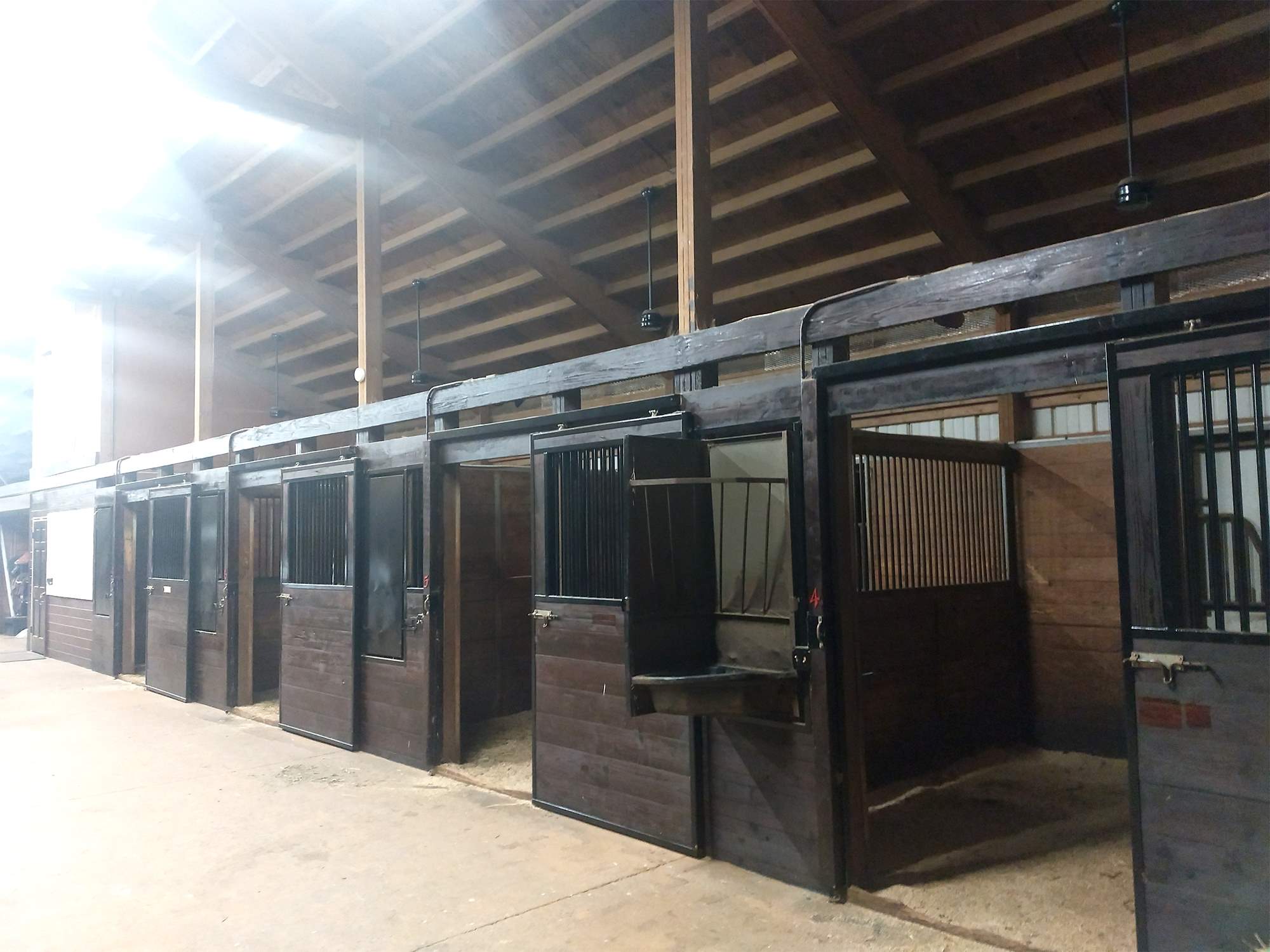 The center includes a large outdoor arena and 1 small indoor arena. All 22 of the center's boarding stalls are well-lit and fully equipped for equine comfort. The center also includes 2 tack rooms and 4 hot and cold water wash areas for horses.